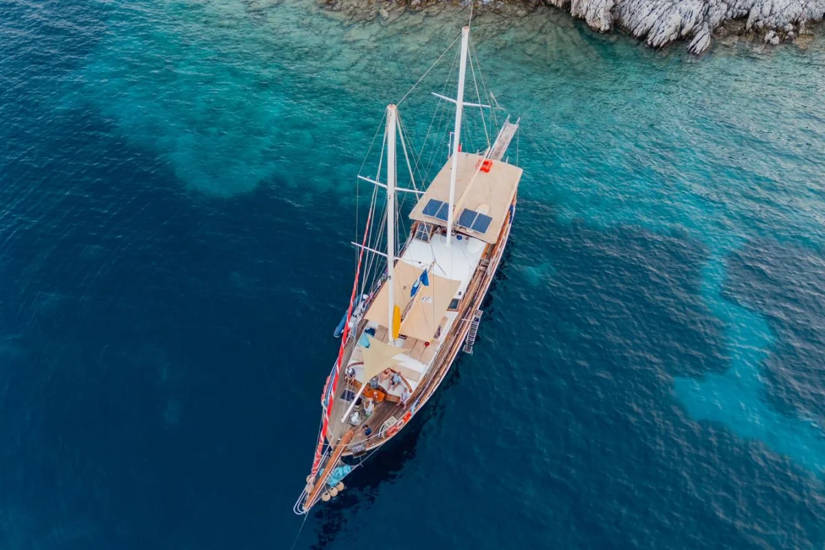 За пределами залива находится невероятный ликийский саркофаг, погруженный в воду, высеченный в скале. Осмотрев эту и другие исторические достопримечательности, мы отправимся в залив Гёккая, где проведем ночь. Для тех, кто заинтересован, вас ждет веселая вечеринка в Smugglers' Inn.