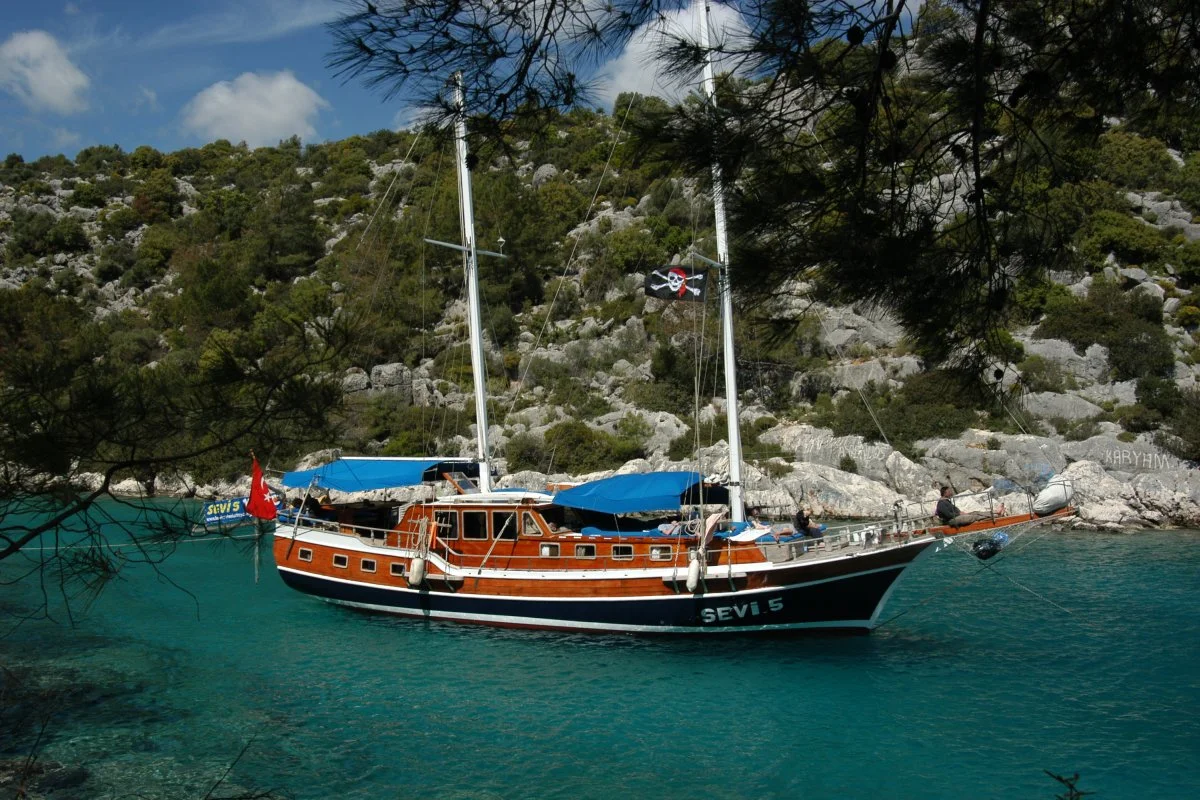 就在海湾外面,有一个令人印象深刻的利西亚石棺,它雕刻在岩石上并放置在水中。参观完这些以及该地区类似的历史遗迹后,我们将启航前往戈卡亚湾,并在那里过夜。对于希望享受这一刻的客人,Smugglers’ Inn 将为您带来愉快的夜晚和有趣的派对。
